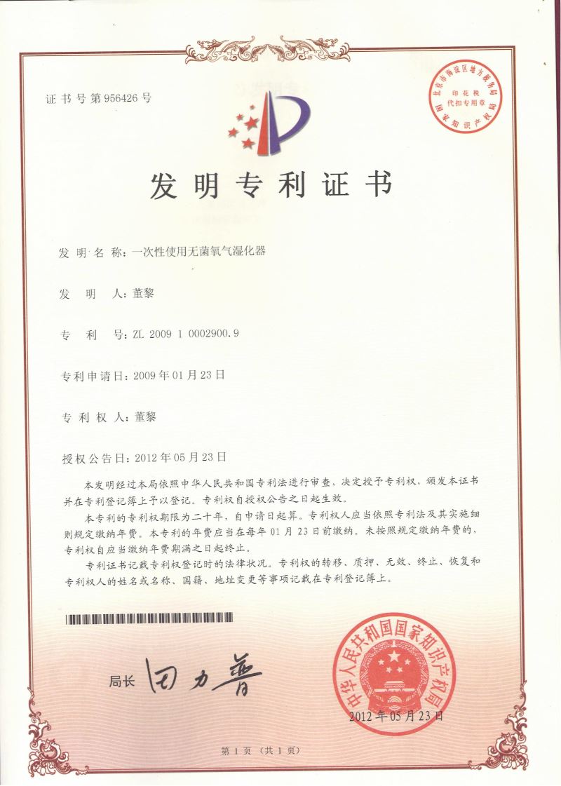 一次性使用氧氣濕化器