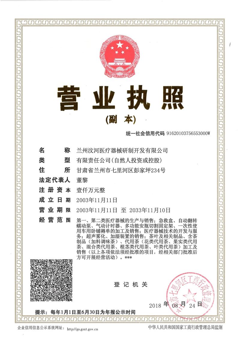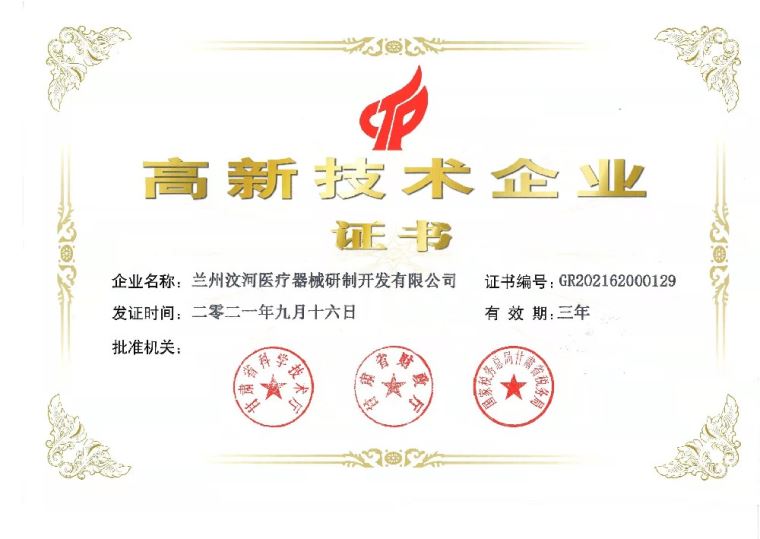 蘭州汶河醫(yī)療器械研制開(kāi)發(fā)有限公司成立于2003年11月11日,是一家集醫(yī)療器械研制、開(kāi)發(fā)、生產(chǎn)、銷(xiāo)售及服務(wù)于一體的科技創(chuàng)新型企業(yè)。2010年天津紅日藥業(yè)增資我司,擴(kuò)地建廠(chǎng),2012年、2015年、2018年相繼被認(rèn)定為國(guó)家高新技術(shù)企業(yè),2019年被認(rèn)定為甘肅省科技型中小企業(yè)。目前擁有涉及醫(yī)療器械領(lǐng)域的發(fā)明專(zhuān)利4項(xiàng),實(shí)用新型專(zhuān)利60余項(xiàng),日內(nèi)瓦金獎(jiǎng)1項(xiàng),醫(yī)療器械產(chǎn)品注冊(cè)證22項(xiàng);2016年、2018年分別獲甘肅省專(zhuān)利獎(jiǎng)各1項(xiàng),2018年獲甘肅省技術(shù)發(fā)明獎(jiǎng)1項(xiàng)。多個(gè)項(xiàng)目獲得國(guó)家科技部火炬中心“科技型中小企業(yè)技術(shù)創(chuàng)新基金”,甘肅省、蘭州市科技項(xiàng)目的立項(xiàng)扶持。2020年獲得蘭州市十大誠(chéng)信企業(yè),汶河公司創(chuàng)始人董黎先生于2019年獲發(fā)明人獎(jiǎng)。